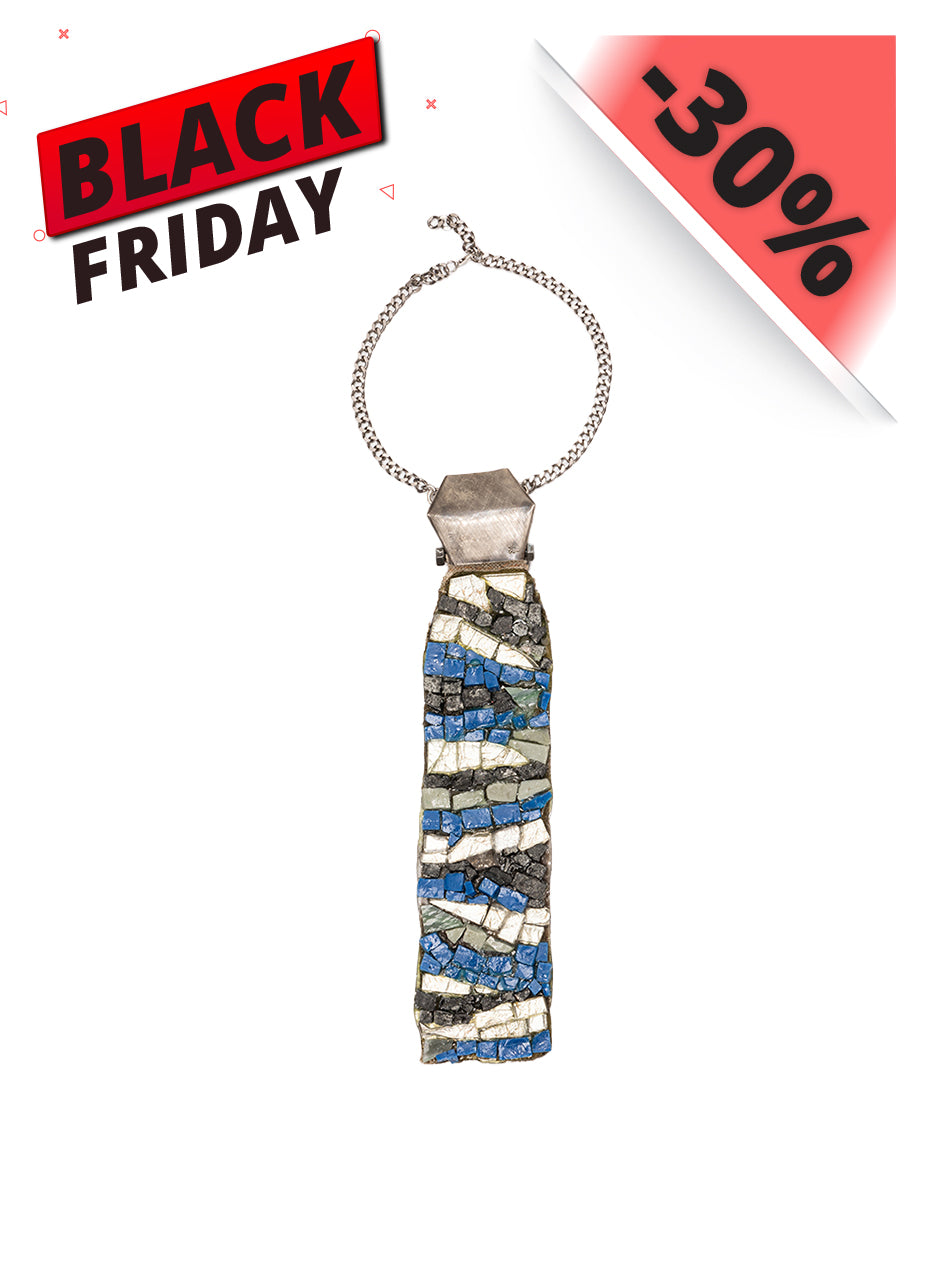 Tehnika/Materijal: mozaik, epoksi smola na platnu, inox, čvor od srebra